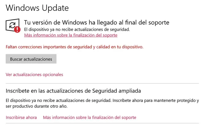 Soluciones a tu versión de windows ha llegado al final del soporte.