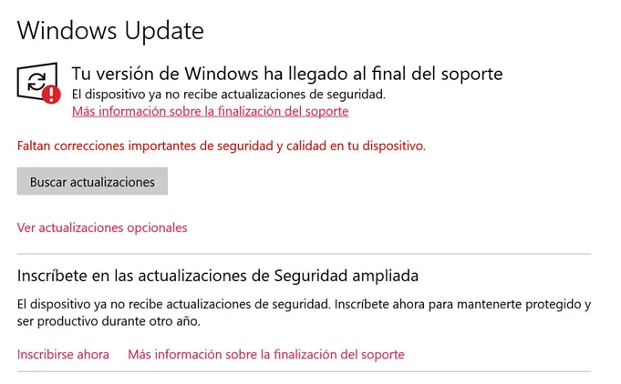 Soluciones a tu versión de windows ha llegado al final del soporte.